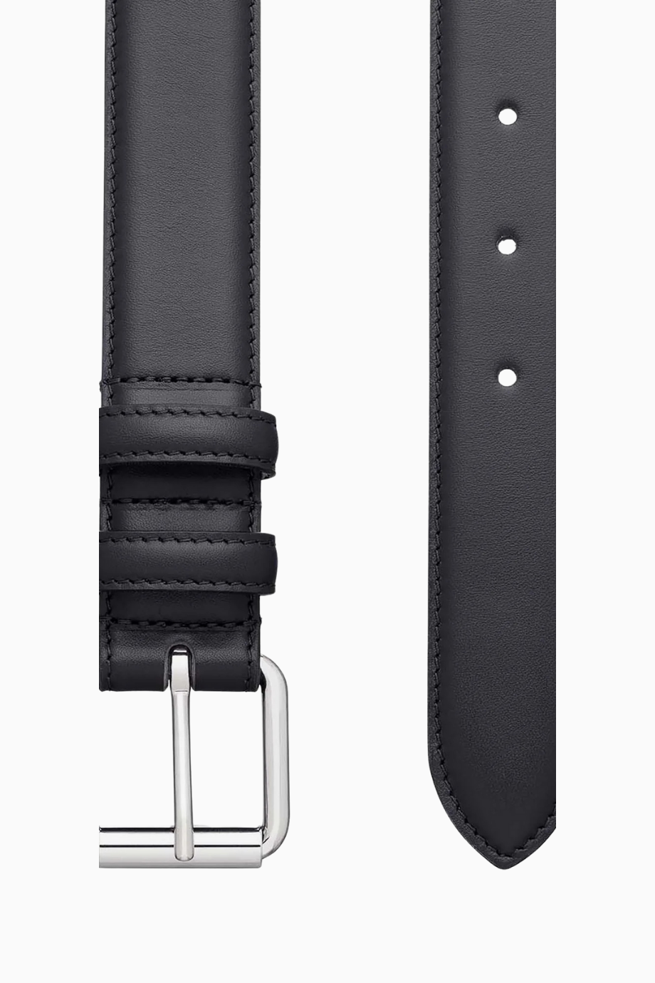 A.P.C. Paris deri kemer, pürüzsüz deri yüzeyi, gümüş renk metal tokası ve iç kısımda yer alan A.P.C. logosuyla zarif ve dayanıklı bir tasarım sunar. 85–100 cm ölçü seçenekleriyle klasik ve modern stillere uyumludur.