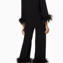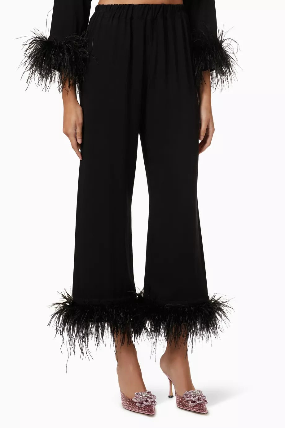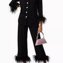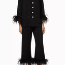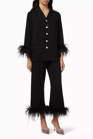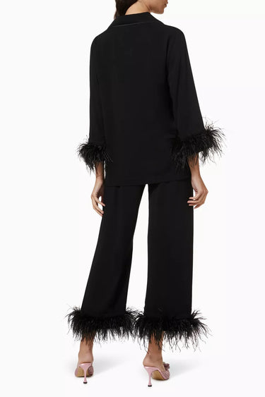 Party Viskon Pijama Takımı Tüy Detaylı İki Parça, Siyah