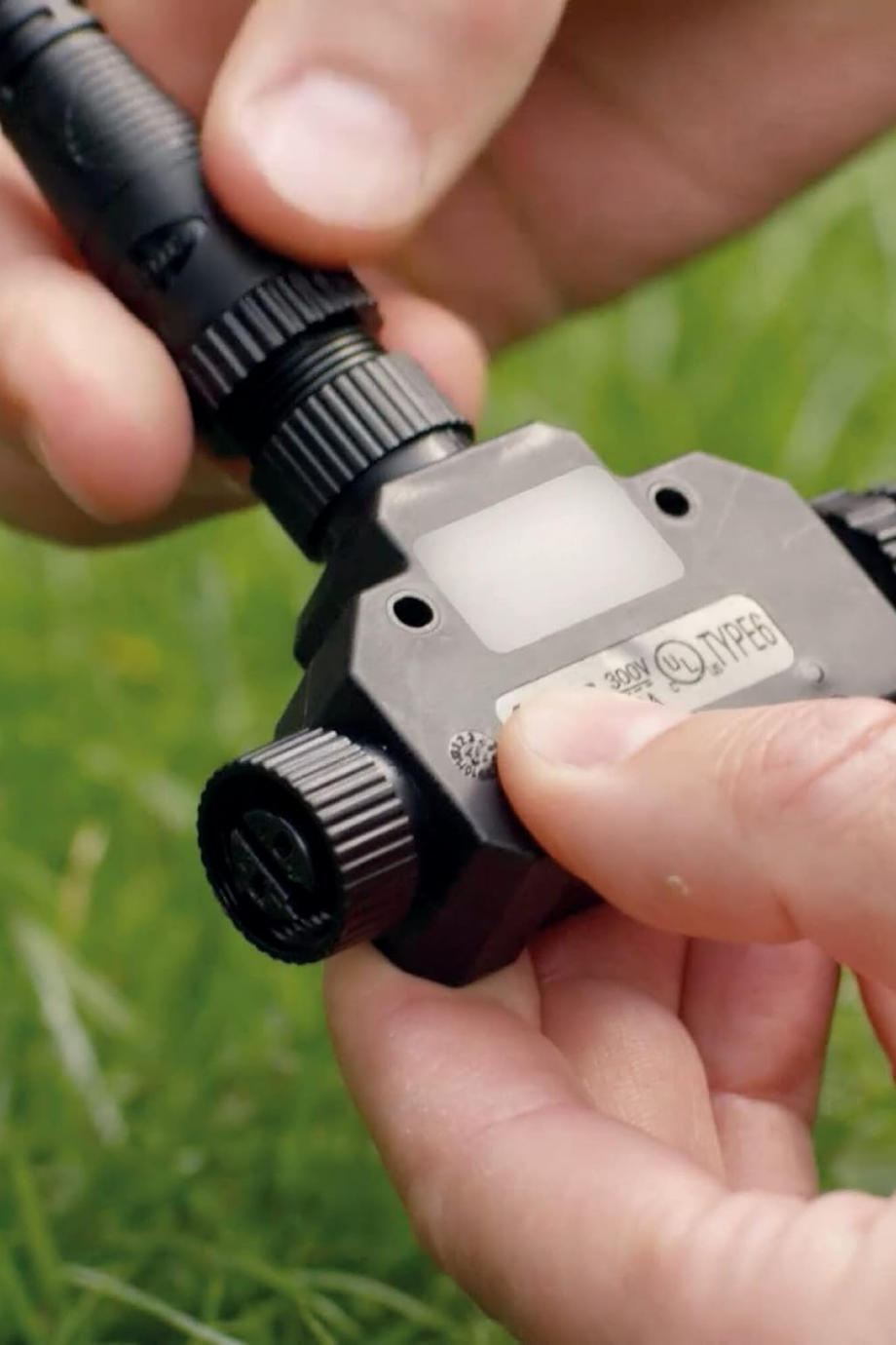 Philips Hue Outdoor T-Plug, düşük voltajlı dış mekan aydınlatma sisteminizi genişletmek için tasarlanmış hava şartlarına dayanıklı bağlantı aparatı. Hue Bridge ile uyumlu, esnek kullanım sunar.