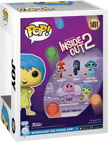 Inside Out 2'nin sevilen karakteri Joy, 9,5 cm'lik Funko Pop! parçalarla koleksiyonlara neşe katıyor. Dayanıklı vinil yapısı sayesinde çocuklar ve yetişkinler için ideal bir hediye ve koleksiyon parçası.