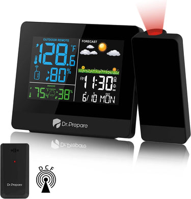 DR.PREPARE projeksiyonlu çalar saat, iç/dış sıcaklık göstergesi, çift alarm, erteleme fonksiyonu ve ayarlanabilir projeksiyon özelliğiyle konforlu bir uyandırma deneyimi sunar.