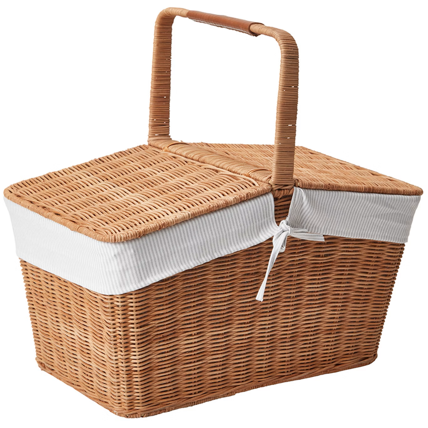 Rattan Piknik Sepeti Kapaklı ve Kulplu Oxford Kumaş Astar ile
