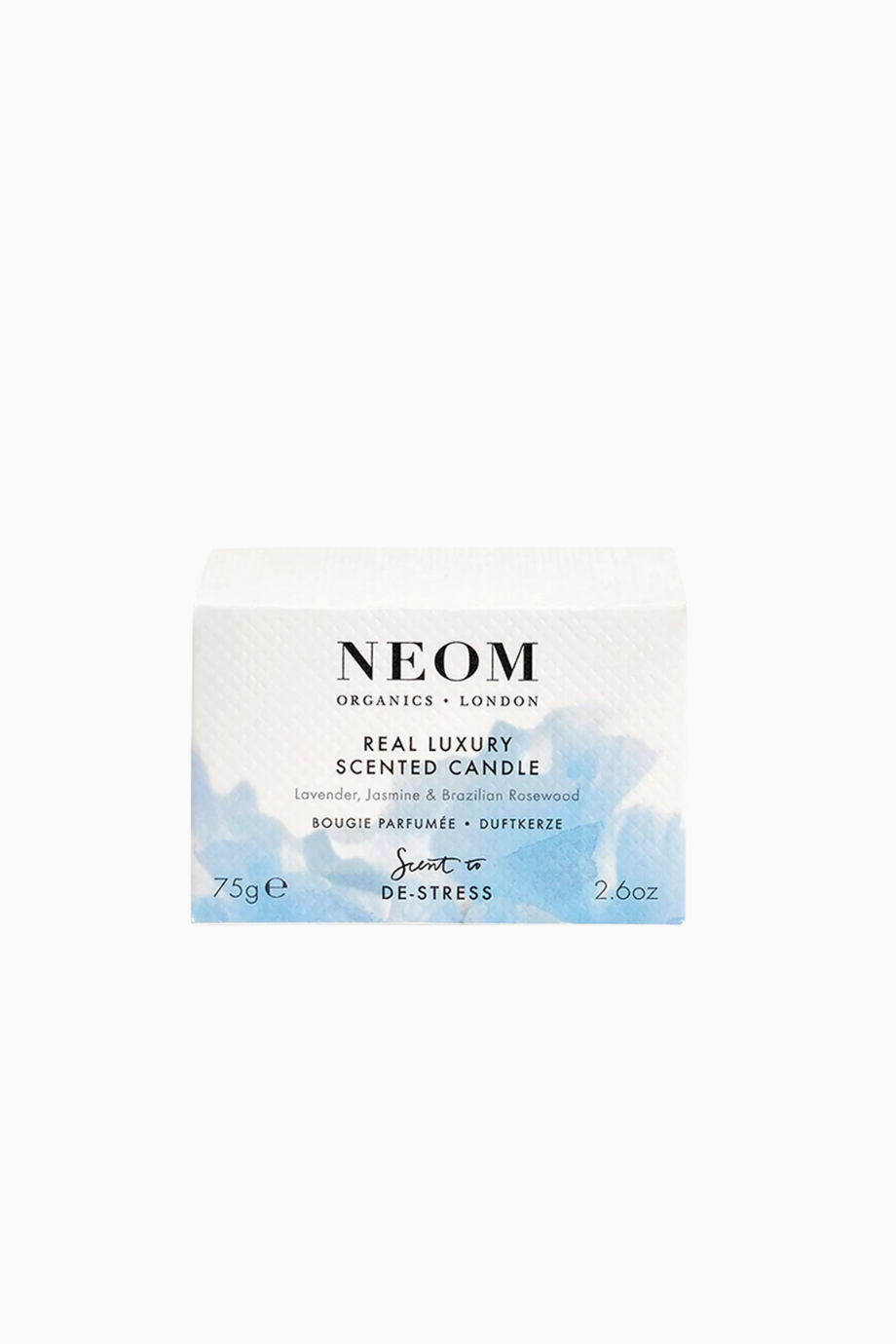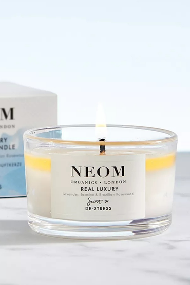 Neom Organics Real Luxury Scented Candle 75g, lavanta, Brezilya gül ağacı ve yasemin notalarıyla hazırlanmış, 20 saat yanma süresine sahip, tek fitilli ve %100 doğal mumdan üretilmiş lüks bir rahatlatıcı mumdur.
