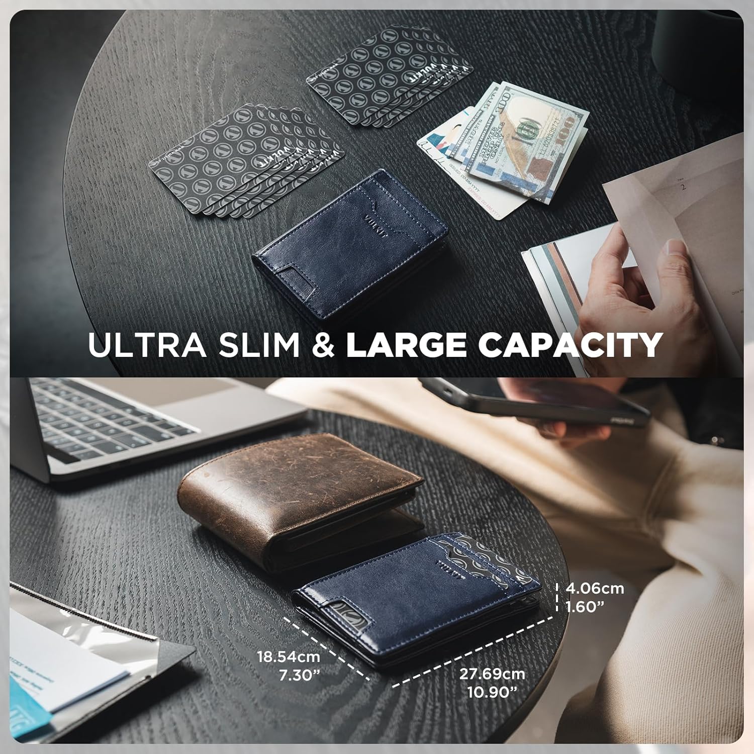VULKIT deri kartlık, 10 kart yuvası ve para bandıyla hem ince hem de işlevsel. RFID/NFC koruması, hızlı erişim yuvaları ve şık tasarımı ile günlük kullanımda ideal. Hediye kutusunda sunulur.