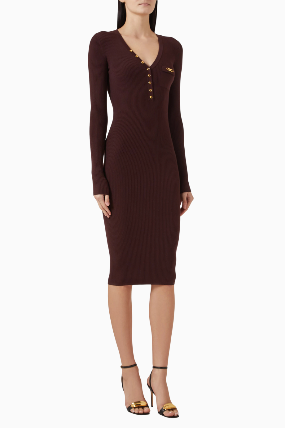 Ribbed Midi Triko Elbise, Lüks Günlük Şıklık