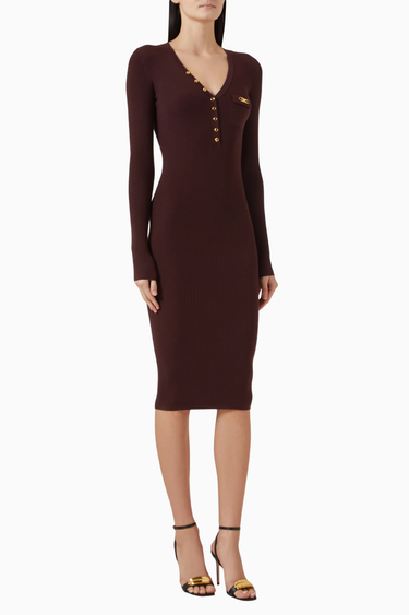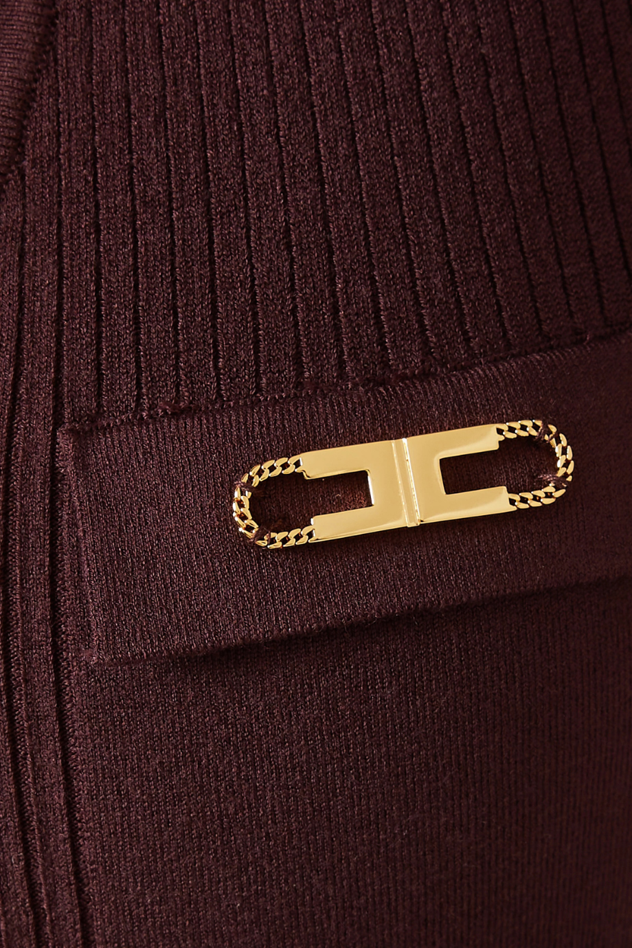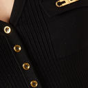 Elisabetta Franchi Ribbed Midi Elbise, triko dokusu ve fitilli tasarımıyla zarafeti modern çizgilerle buluşturuyor. Göğüs cepleri ve logo düğme detaylarıyla yapılandırılmış bir görünüm sunarken, midi boyu sayesinde hem gündüz hem akşam kombinleri için ideal bir seçimdir.