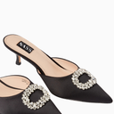 Row 50 Siyah Kristal Taşlı, Saten Sivri Burun El Yapımı Şık ve Zarif Mule
