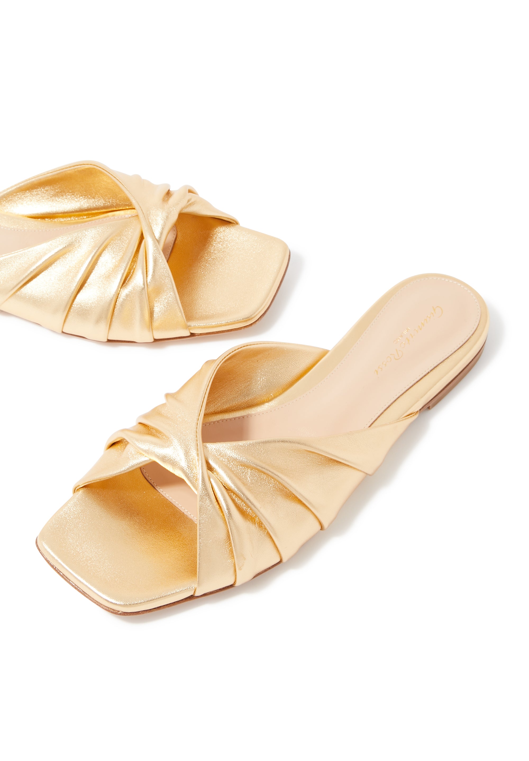 En kaliteli malzemelerle mükemmel bir şekilde tasarlanmış Gianvito Rossi Selene Düğüm Deri Terlikler ile lüks bir tarzın kapılarını aralayın. Bu terlikler, zarafet ve konforu simgeler, her gardıroba mükemmel bir ekleme dönüşür. Minimalist tasarım, üst kısımda yer alan şık düğüm detayı ile yükseltilerek, sade çekiciliğine bir parıltı katmaktadır. Göz alıcı bir renkte sunulan bu terlikler, hem özel günler hem de günlük kullanım için ideal olan bir ihtişam ve çok yönlülük taşır.