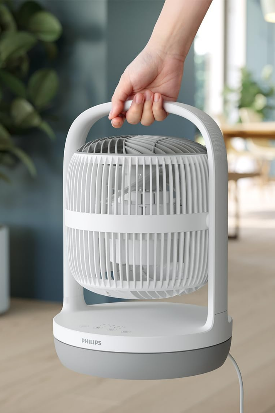 Philips Serisi 2000 masa fanı, 23 dB ultra sessiz SilentWings teknolojisi, 180° ayarlanabilir başlık ve 12 saat zamanlayıcı ile güçlü ancak sessiz serinlik sunar. Hem evde hem ofiste konforlu kullanım sağlar.