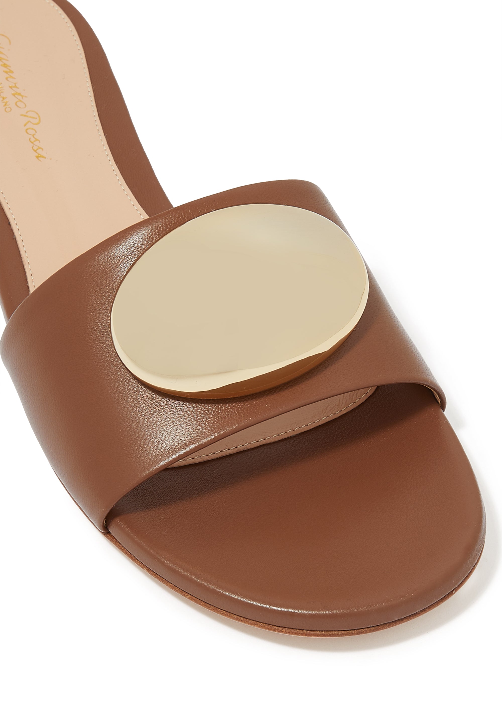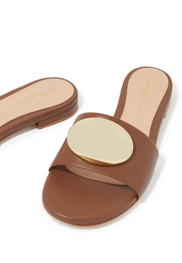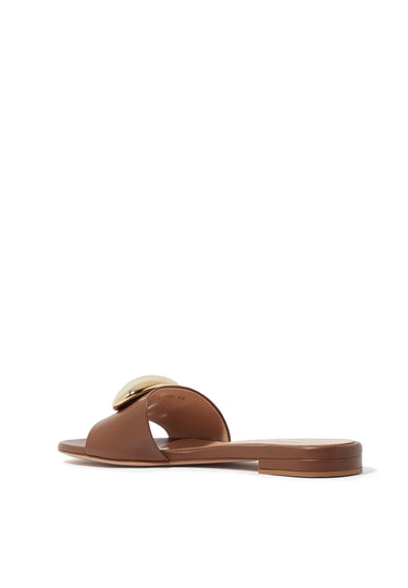 Sferik Düz Deri Sandalet - Açık/Pastel Kahverengi