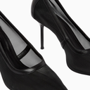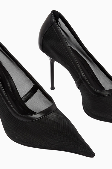 Sheer 100 Siyah File ve Deri, Sivri Burun Lüks Stiletto Topuklu Ayakkabı