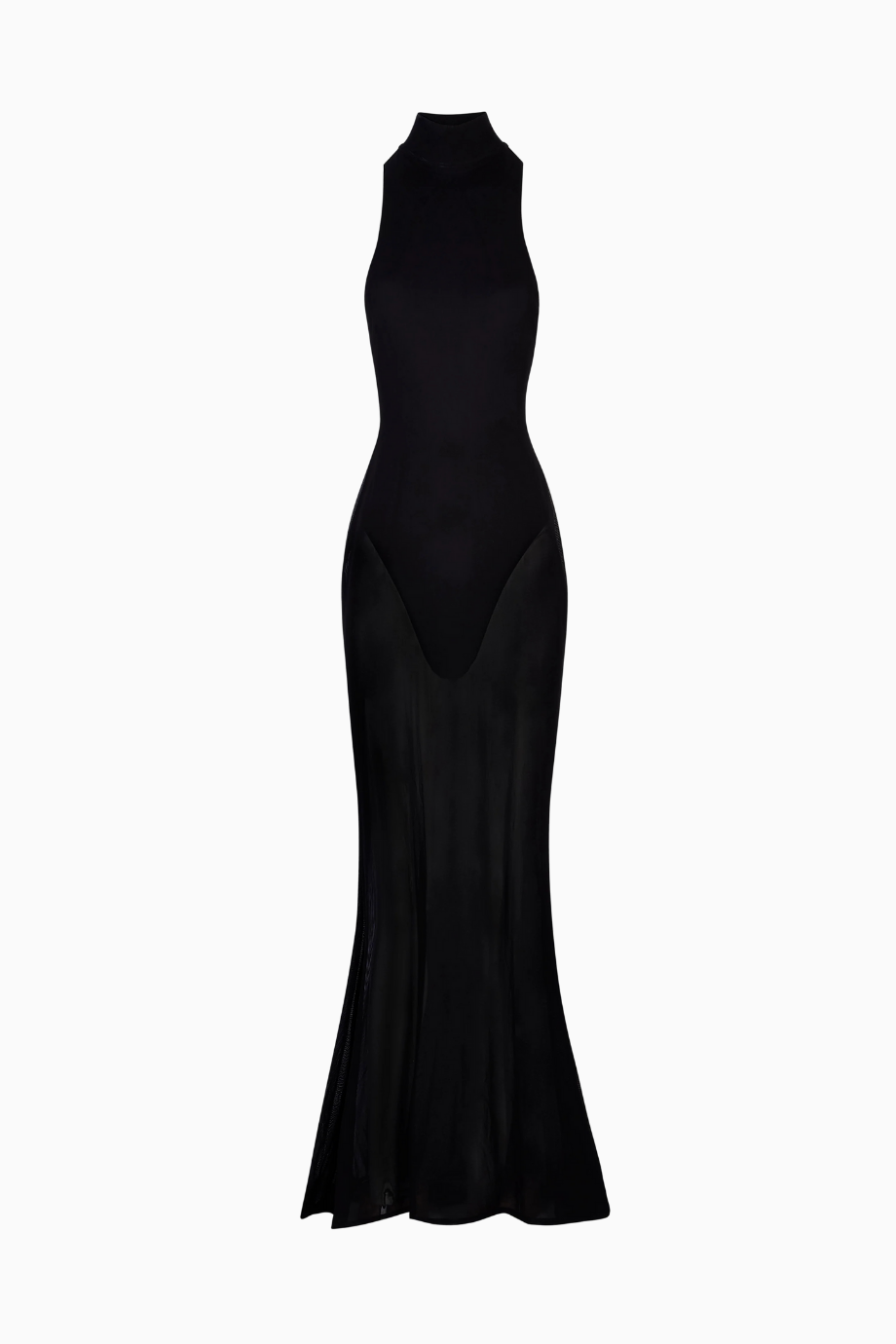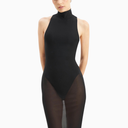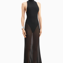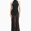 Sheer High Neck Racerback Gown Maxi Kadın Elbise
