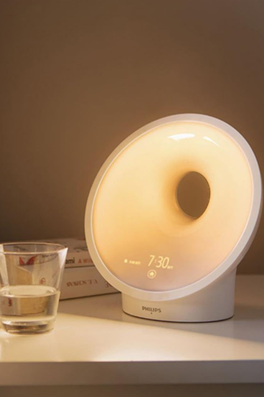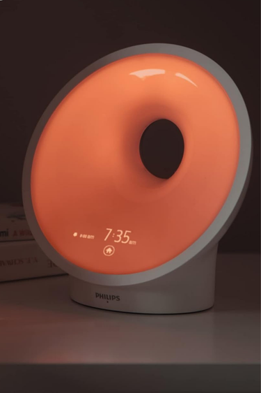 Philips Sleep & Wake-Up Light, 25 kademeli ışık ayarı, renkli gün doğumu simülasyonu ve rahatlatıcı nefes fonksiyonuyla doğal uyanma ve uykuya dalma deneyimi sunar. Okuma lambası, FM radyo ve erteleme fonksiyonuyla çok işlevli bir yatak başı lambasıdır.
