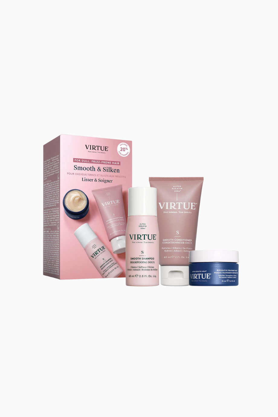 Virtue Smooth Kit, mat ve kontrolsüz saçlar için geliştirilmiş lüks bir bakım ve styling setidir. Saçı nemlendirir, pürüzsüzleştirir ve parlaklık kazandırır. Profesyonel formülüyle saç kolay taranır ve hedeflenen şekilde şekillendirilir.