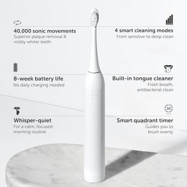 Wondersmile Sonic PRO, 40.000 fırça darbesiyle derinlemesine temizlik sunar. 4 program, akıllı başlık uyarısı ve 60 güne kadar pil ömrüyle ideal bir ağız bakım çözümüdür.