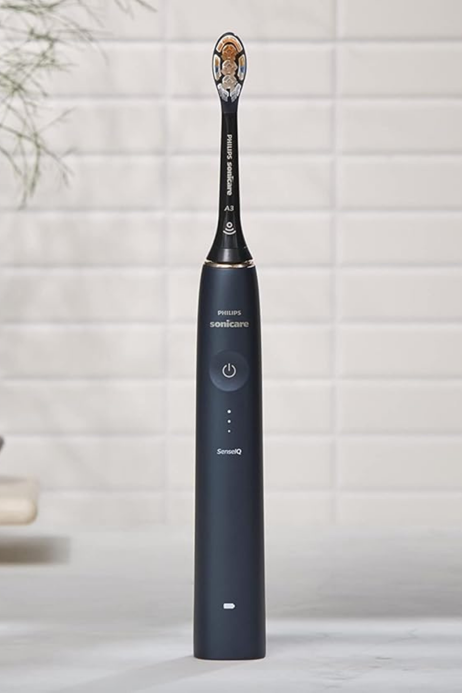 Philips Sonicare 9900 Prestige HX9992/21, yapay zeka destekli SenseIQ teknolojisiyle fırçalama alışkanlıklarınıza uyum sağlar. 20 kat daha fazla plak temizliği ve %100'e kadar beyaz dişler sunar.