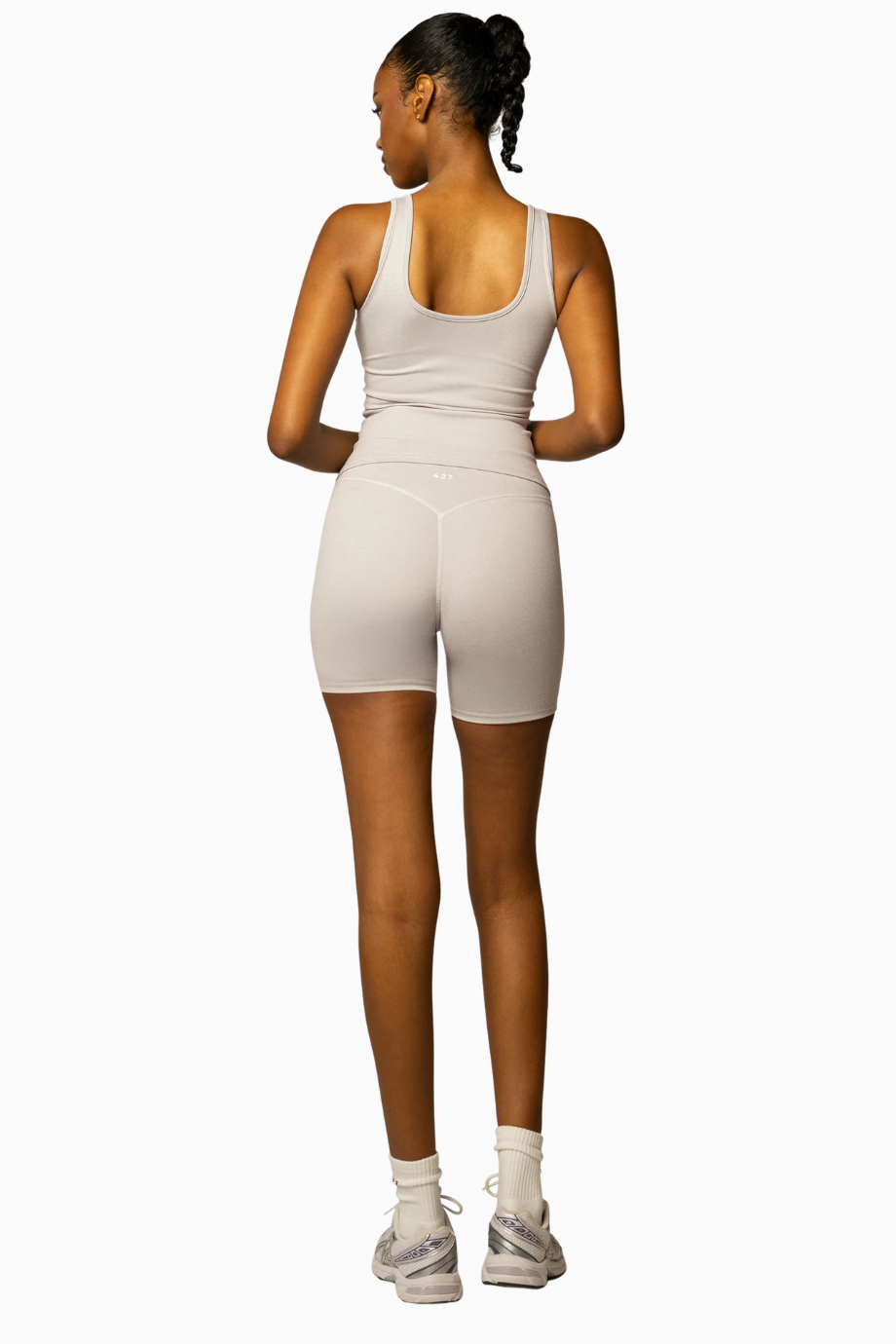 437 The Essentials Short, 437 Cloud™ geri dönüştürülmüş kumaşıyla çevre dostu, nem emici ve hızlı kuruyan bir spor şorttur. Oeko-Tex sertifikalı üretimi, düşük karbon emisyonlu boyama süreci ve doğal gazla çalışan makineleriyle sürdürülebilir konfor sunar.