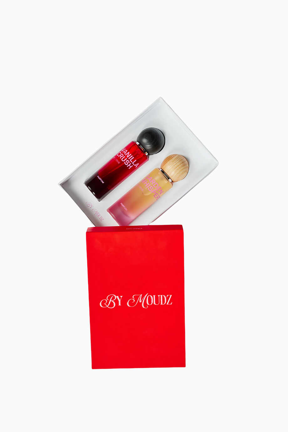 By Moudz The Traveller Set, Vanilla Crush ve Garden Whispers parfümlerini 2x30ml şişelerde sunar. Seyahat için ideal boyutlarıyla günlük tazelenmeyi sağlar. Kompakt ve şık tasarımıyla her an yanınızda taşıyabileceğiniz, lüks ve sofistike bir parfüm deneyimi sunar.