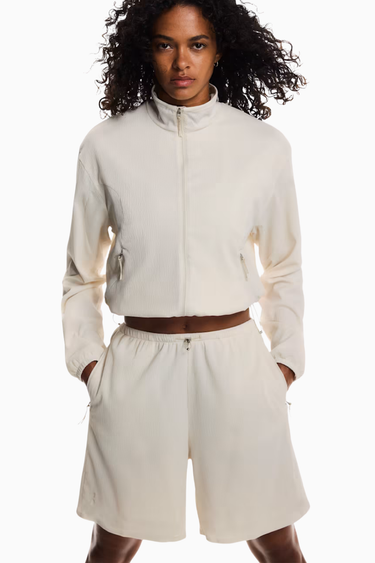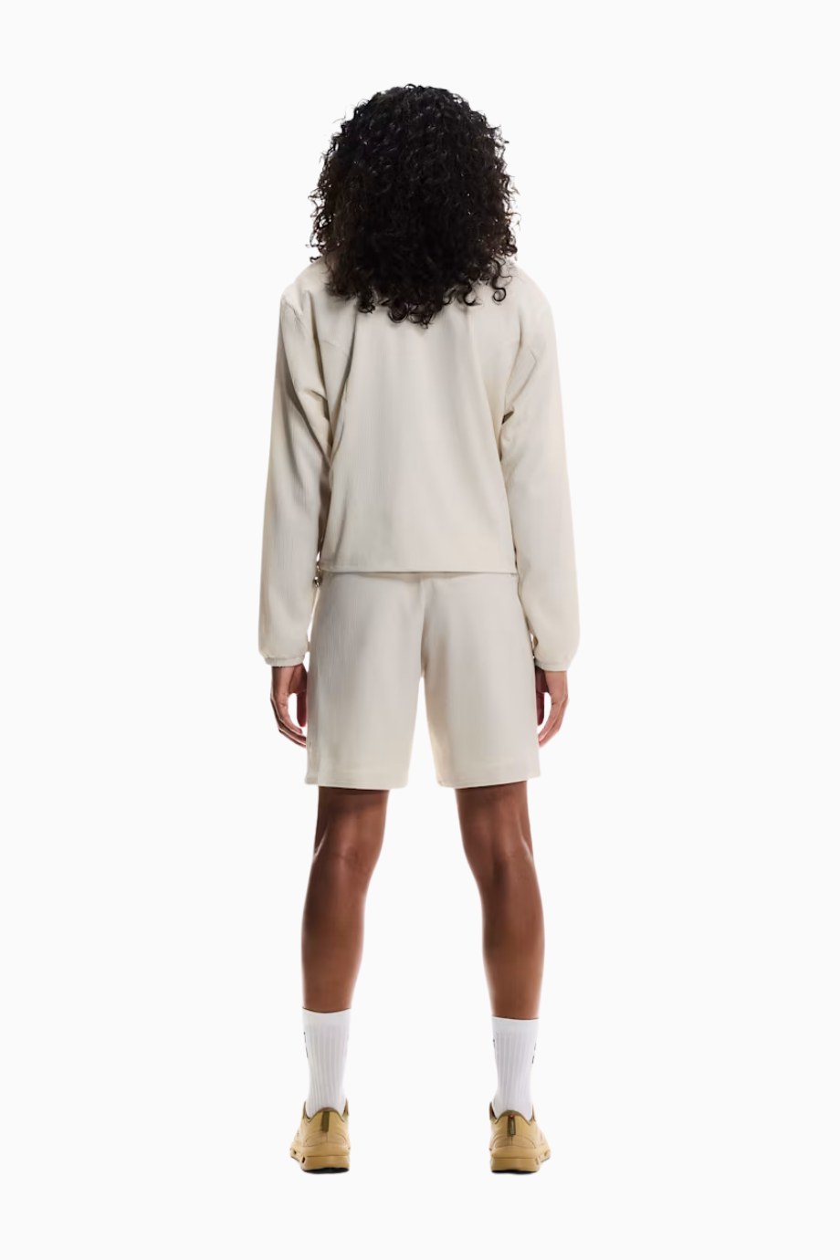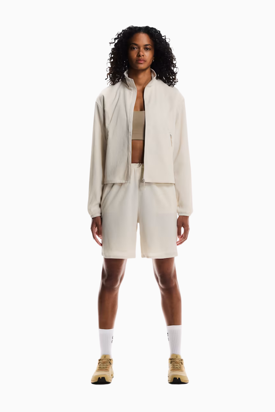 On Track Jacket, ultra hafif yapısı ve rahat boxy fit kesimiyle gün boyu konfor sunar. Ayarlanabilir etek ucu büzgüleri, elastik manşetleri ve nefes alabilir mesh astarı sayesinde hem spor hem günlük kullanım için idealdir. Şık ön fermuar detayına sahiptir.