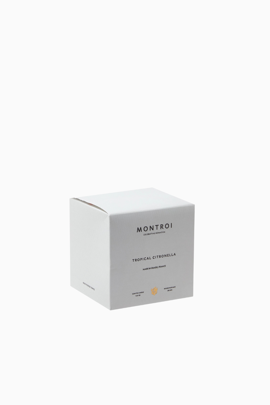 Montroi Tropical Citronella Travel Candle, 280g’lık kompakt tasarımıyla hem rahatlatıcı hem de sinek kovucu bir atmosfer sunar. Citronella, okaliptüs, lemongrass ve lavanta notalarıyla taze, ferah ve pratik bir seyahat deneyimi sağlar.