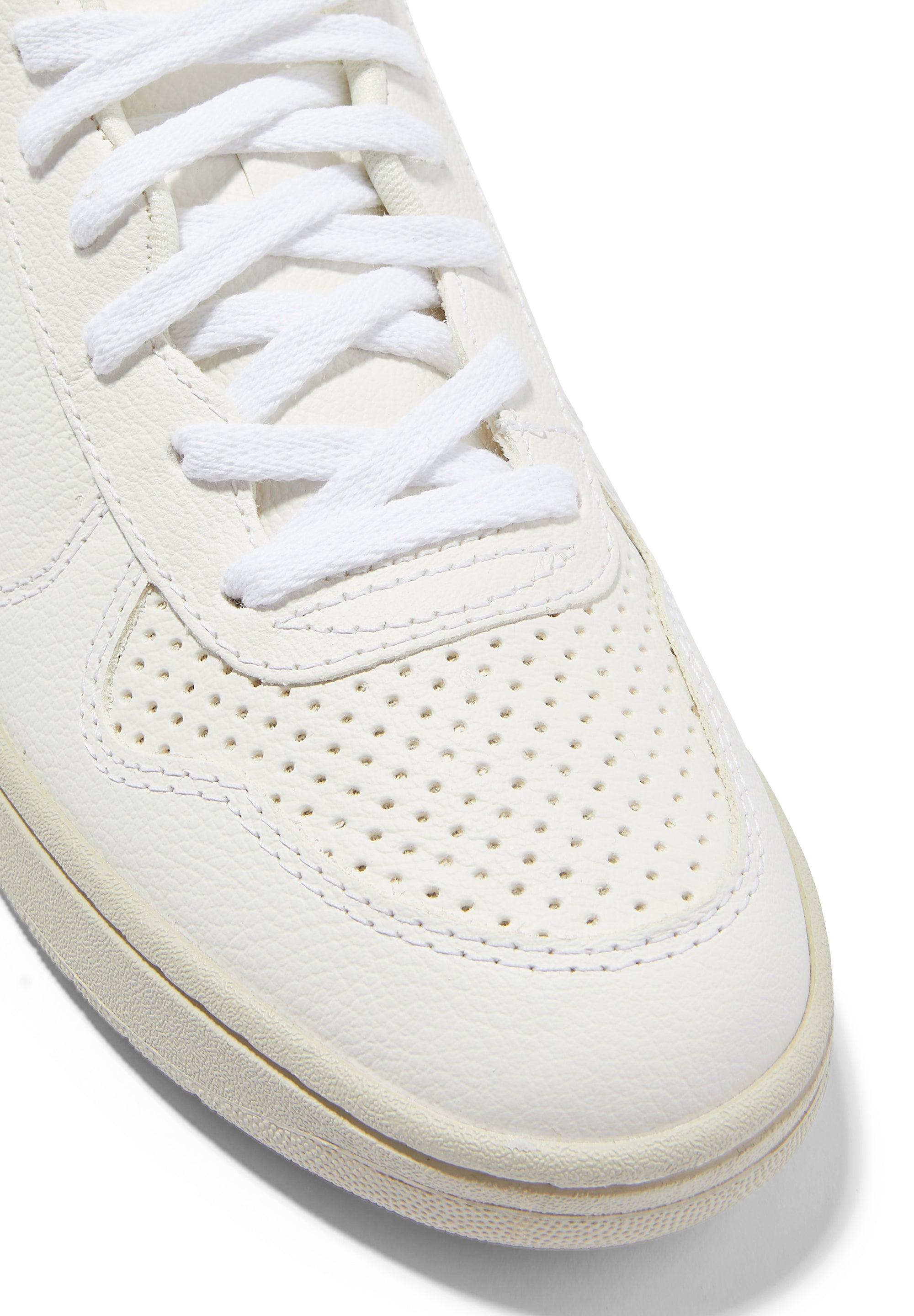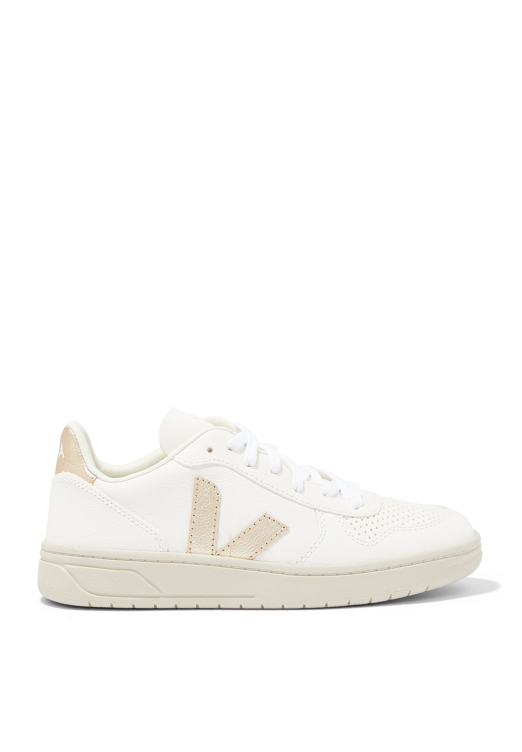 Klasik kort tarzı, Veja’nın V-10 spor ayakkabılarında sürdürülebilirlikle buluşuyor. Her gün için mükemmel bir çift olan bu ayakkabılar, pürüzsüz krom-sız deri üst kısıma ve şık bir görünüm için kontrast metalik detaylara sahiptir. Kalın kauçuk tabanı, basketbol esintili delikleri ve yan tarafındaki imza V logosu ile tamamlanmıştır.