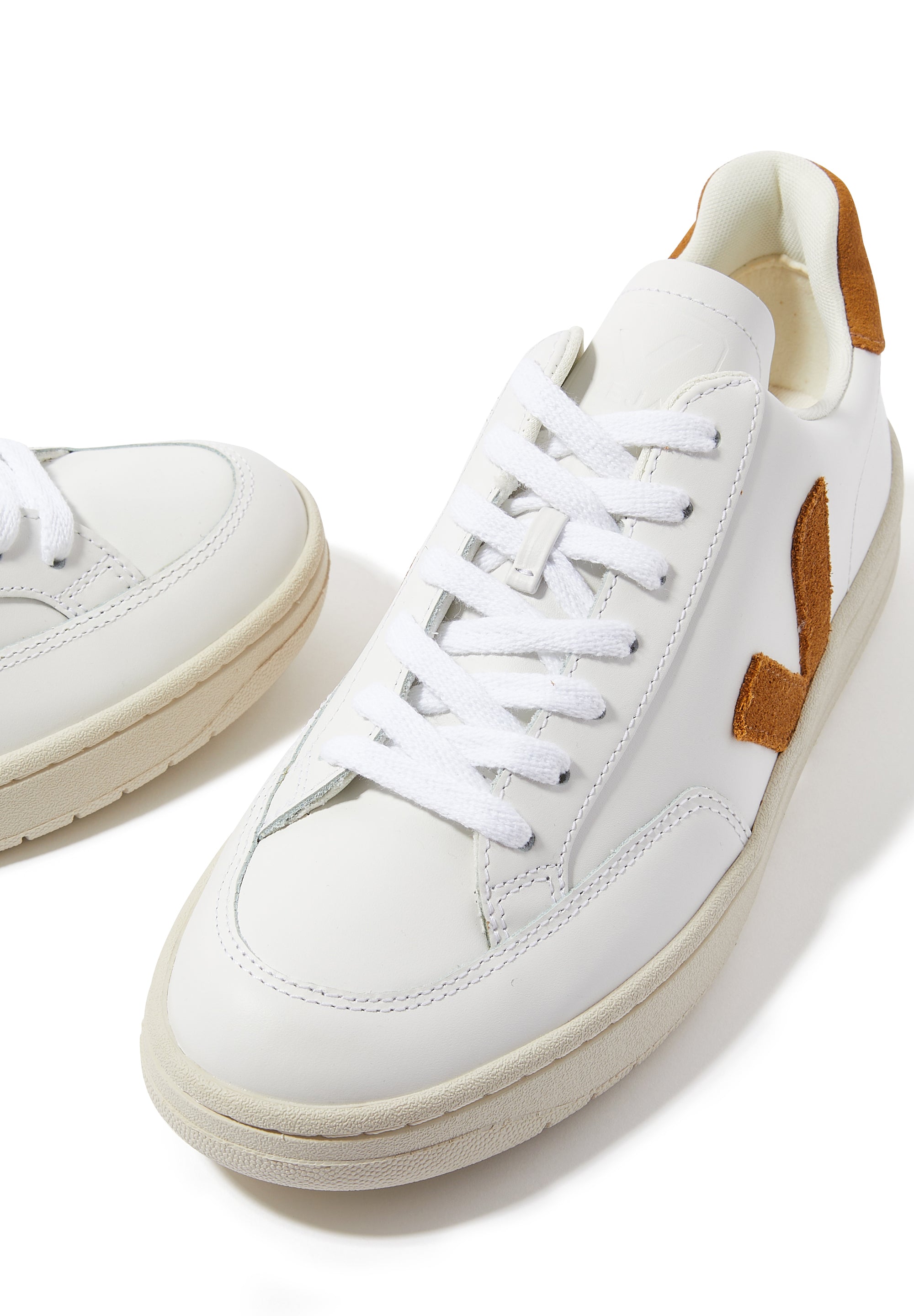 Veja'nın etik el işçiliğini ve temiz Fransız tasarımını V-12 ile kucaklayın. Günlük kullanım için mükemmel bir sneaker olan bu model, pürüzsüz deri üst kısma ve markanın imzası olan V logosu aplikesi ile topuk etiketine sahiptir.