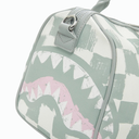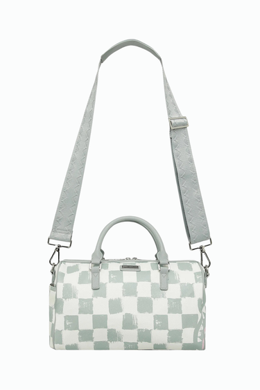 Sprayground çanta; gri, beyaz renkte dama desenleri ve köpek balığı ağzı deseni ile öne çıkıyor. Model Özellikleri Fermuarlı yan cep. Astarlı model. Üç adet iç cep: Bir adet fermuarlı, iki adet sürgülü cep. Arkada fermuarlı cep. Çantanın tabanını koruyan ayaklara sahip model. Elde veya omuzda taşınabilen çanta. Sapları ve çıkarılabilir, ayarlanabilir askısı mevcuttur. A4 formatına uymaz. Fermuarlı iç cep sayısı: 1. İç cep sayısı: 2. Derinlik: 19 cm. Yükseklik: 19 cm. Taban genişliği: 33 cm. Ana malzeme: %100 PVC Astar: %100 Polyester