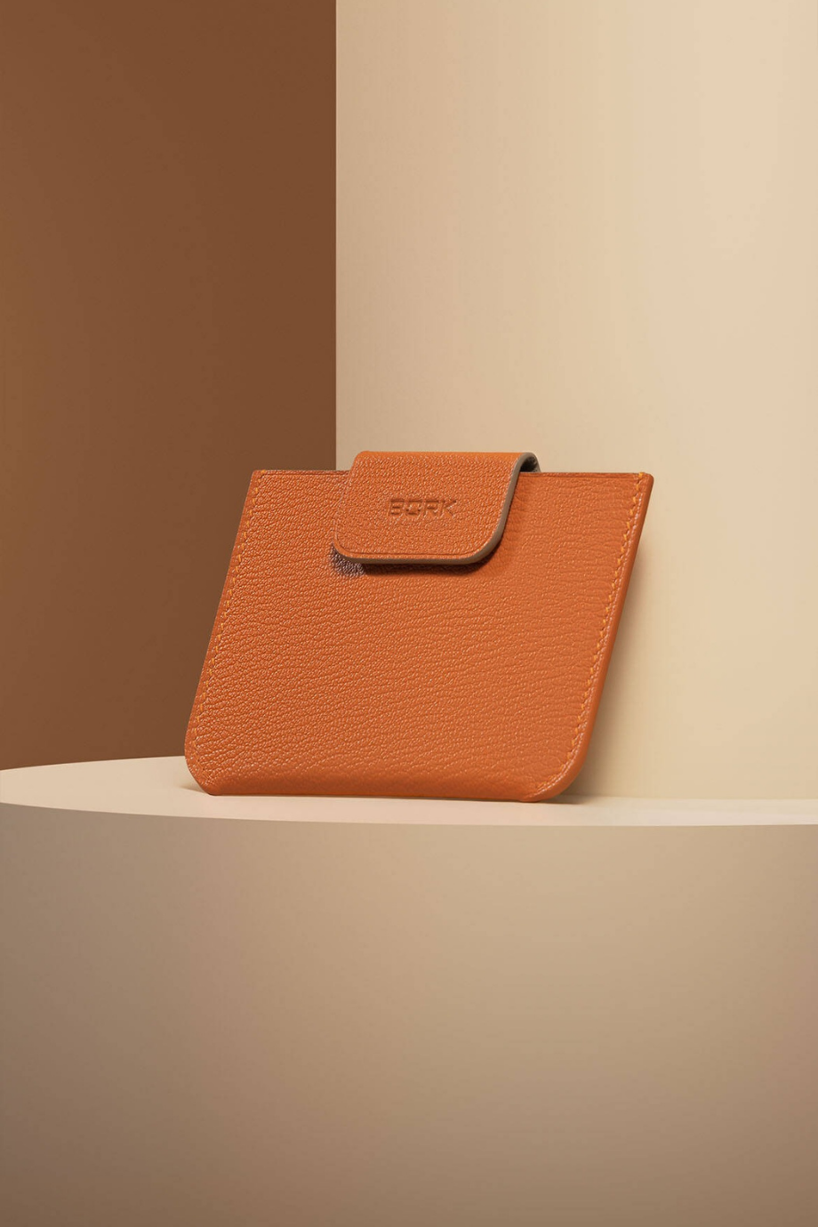 Bork Wallet HL711 or, Fransız tam tanecikli deriden üretilmiş lüks bir aksesuardır. Parlak turuncu rengi, kompakt formu ve Alcantara iç astarıyla sofistike bir şıklık sunar. Her çantaya kolayca sığan zarif bir detaydır.