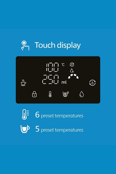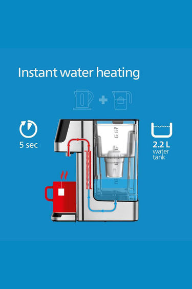 Philips Su İstasyonu Sebili ile saniyeler içinde filtrelenmiş sıcak su elde edin. 6 sıcaklık seviyesi, 5 miktar ayarı, dokunmatik ekran ve Taste+ filtre ile klor, kireç, ağır metaller, mikroplastikler ve PFOA’yı azaltır. 2,2 L kapasite ve kompakt tasarımıyla ev ve ofis için ideal.