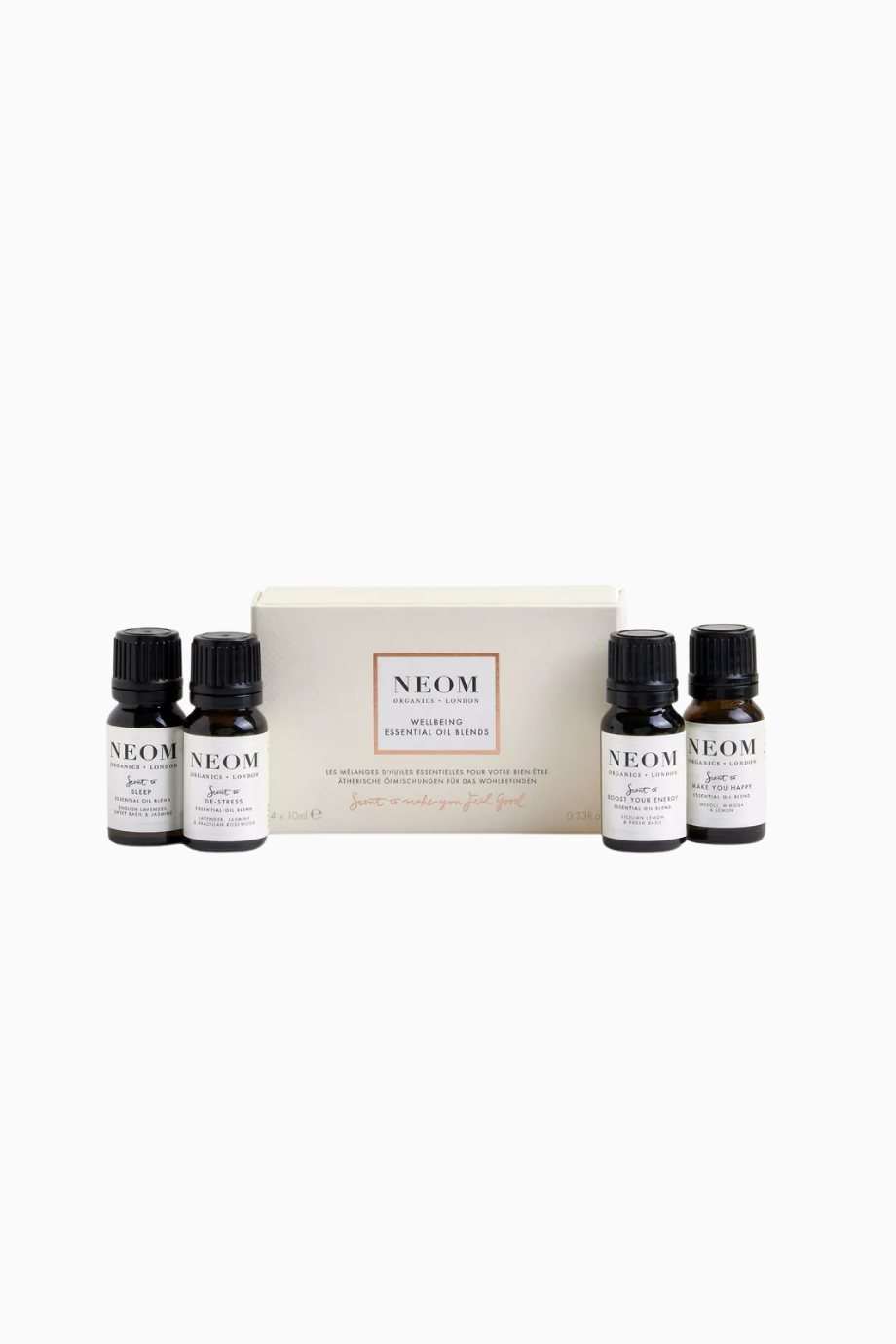 NEOM Wellbeing 4’lü Esansiyel Yağ Karışımları, %100 doğal içerikleriyle evinize huzur, enerji ve mutluluk getirir. Stresi azaltan, uyku destekleyici, enerji artırıcı ve mutluluk veren aromalarla aromaterapi keyfini yaşayın.