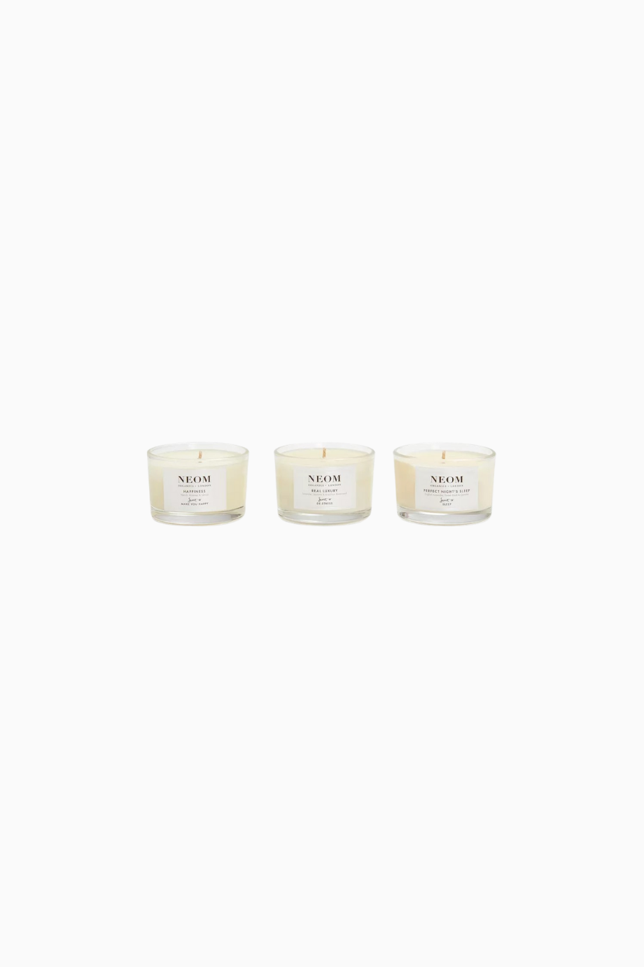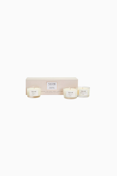Neom Organics Wellbeing Mum Üçlü Seti, Happiness, Real Luxury ve Perfect Night’s Sleep mumlarıyla evinizde mutluluk, huzur ve kaliteli uyku atmosferi yaratır. %100 doğal esansiyel yağlarla hazırlanmıştır.