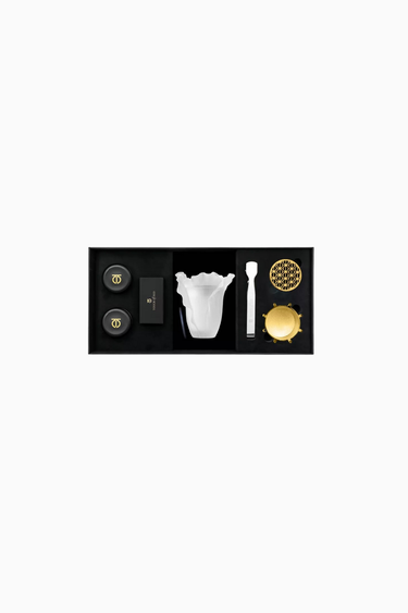Touch Of Oud White Cabbage Buhur Seti, dokhoon ve bukhoor çeşitleriyle evinize zarif ve huzurlu bir koku deneyimi sunar. Kristal beyaz buhurdanlık ve şık aksesuarlarla özel günler için ideal bir hediye seçeneğidir.