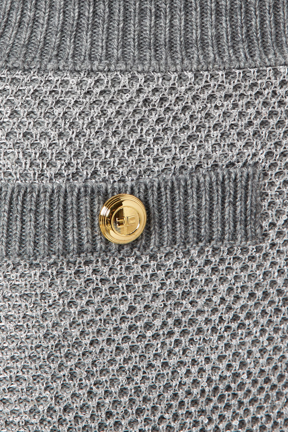 Orijinal Elisabetta Franchi Wool-Blend Knit Mini Skirt, payetli yüzeyi ve altın tonlu logo düğmeleriyle zarif bir ışıltı sunar. Yün karışımlı örgü kumaşı ve fit kesimiyle gün boyu şıklık sağlar. Gündüzden geceye sofistike bir görünüm için idealdir.