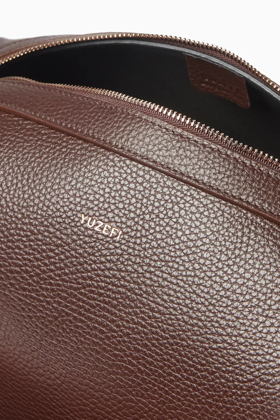 Yuzefi Brioche Duffle Çanta, çakıl taşlı deriden üretilmiş, sade ve işlevsel bir spor çantadır. Geniş iç hacmi ve yumuşak kulplarıyla günlük kullanım ve seyahatler için idealdir.